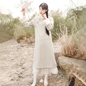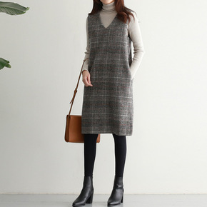 毛呢背心连衣裙女秋冬新款宽松外穿v领优雅气质千鸟格...