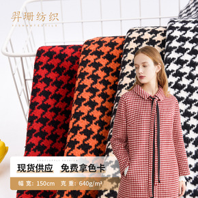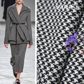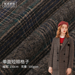 厂家磨毛小千鸟格粗纺呢绒面料 0716千鸟纹大衣女...