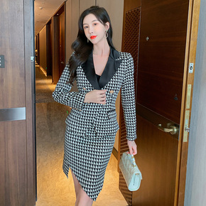 v领气质显瘦气质潮流女生韩国东大门早春新款韩版千鸟...