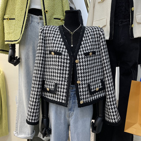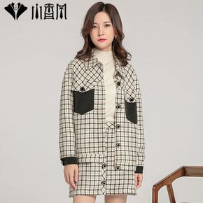 小香风名媛套装秋冬加厚千鸟格气质毛呢小西装外套半身...