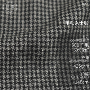 现货供应秋冬羊毛精纺竖条羊毛面料千鸟格子女士呢时装...