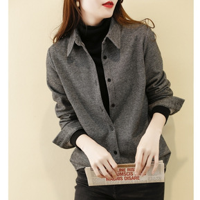 polo领格子衬衫女秋冬复古港味千鸟格设计感衬衣洋...