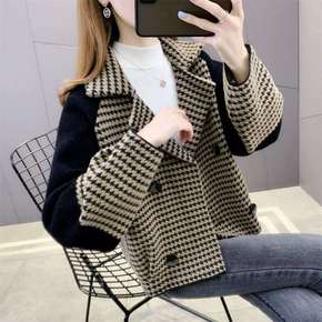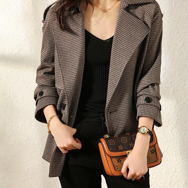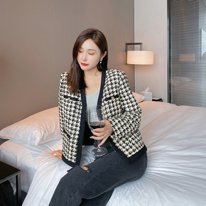 外套女秋冬小个子2021年新款ins潮名媛风千鸟格...