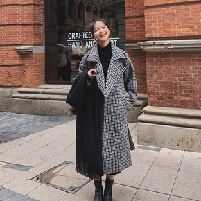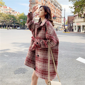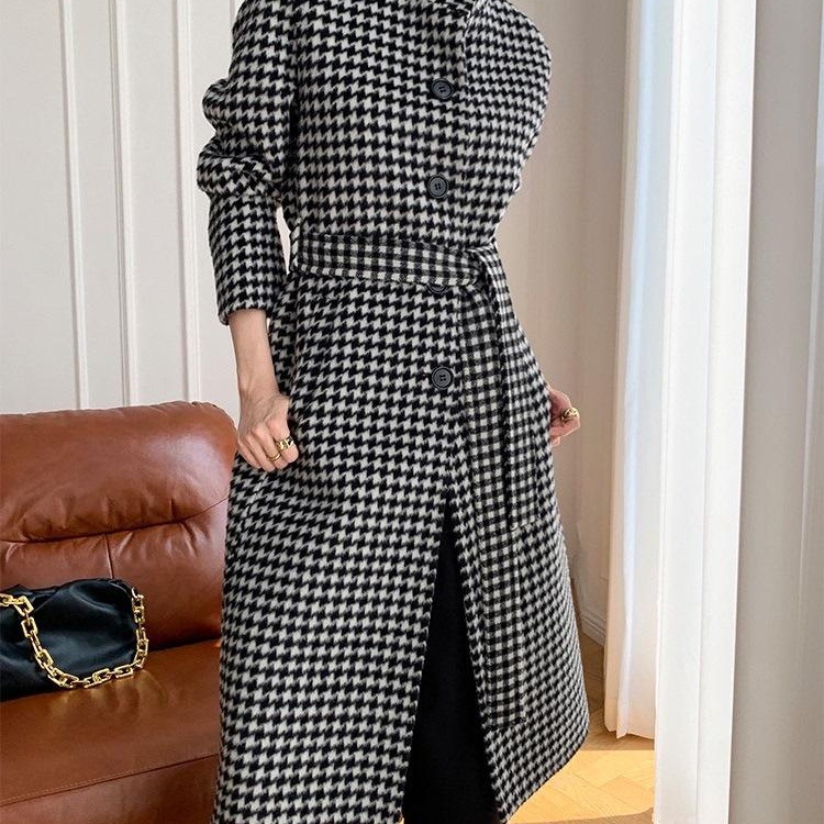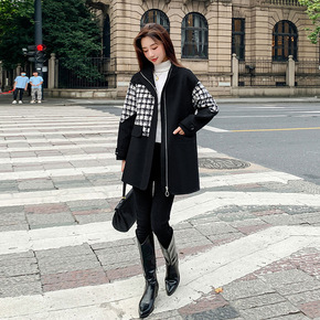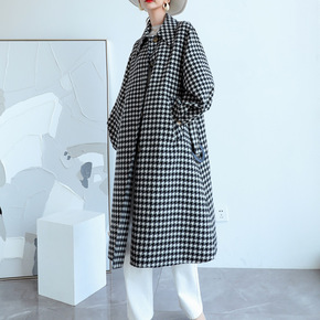 复古气质千鸟格毛呢外套女2021年冬季新款洋气流行...