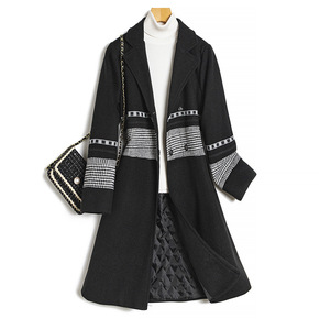 黑色双面羊绒呢子大衣女2022年秋冬季新款千鸟格拼...