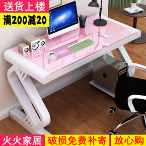 粉色电脑桌台式家用女生直播桌少女电竞桌办公桌钢化玻...