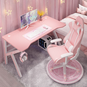 粉色电竞桌电脑台式桌游戏家用直播桌子情侣双人桌椅套...
