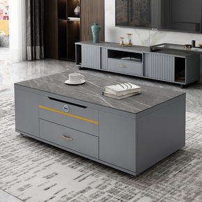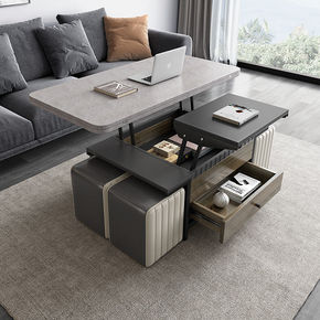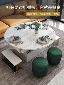 升降茶几现代简约小户型折叠伸缩可储物火烧石茶几餐桌...