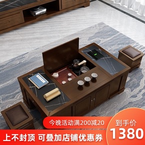 电动升降岩板功夫茶几客厅带电磁炉茶具一体实木多功能...