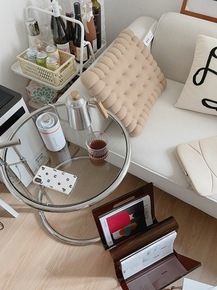 中古茶几不锈钢玻璃升降小透明边几风博主咖啡馆民宿网...