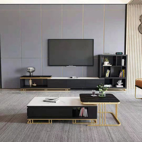 茶几客厅约大小户型黑色多功能升降茶几电视柜组合*...