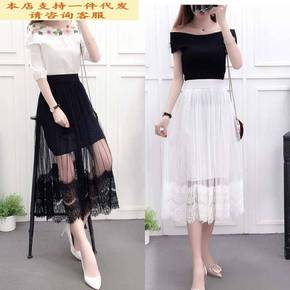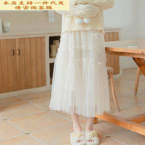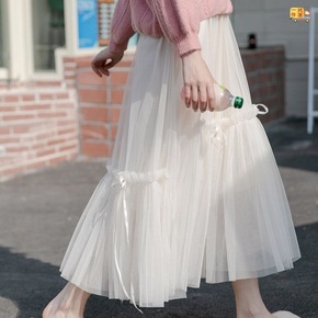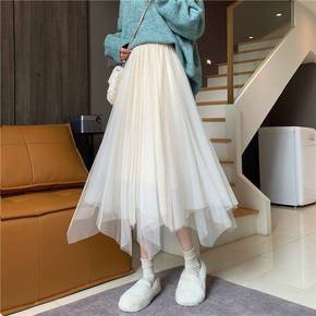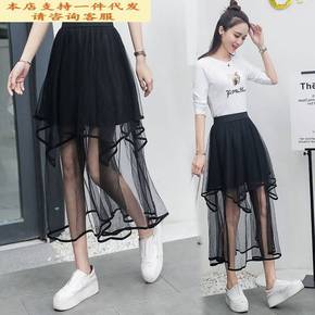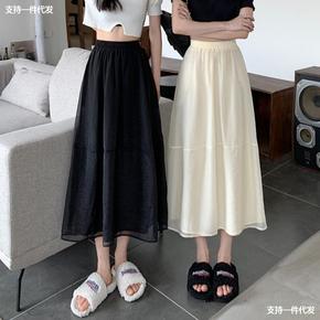 中长款半身裙女2022春季新款女装韩国网纱裙甜美学...