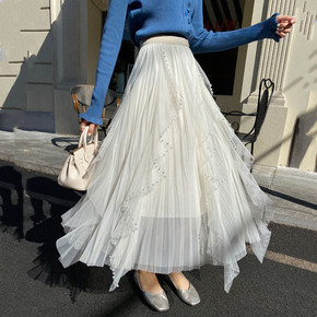 仙女半身裙高端网纱半身裙女高腰字裙2022春夏新款...