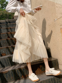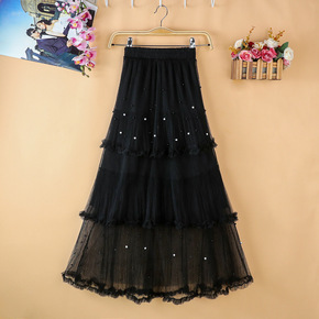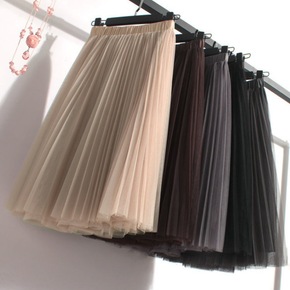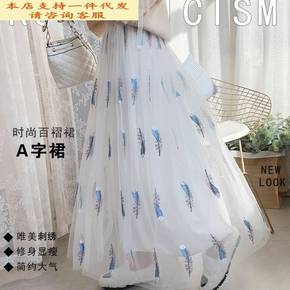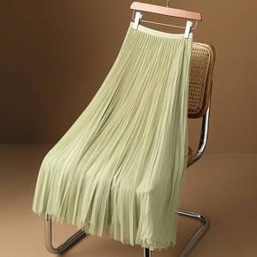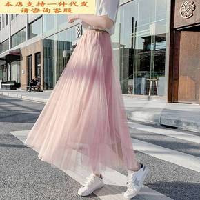 春款半身裙仙女网纱拼接百褶蓬蓬裙中长款半身裙大摆a...