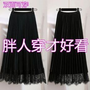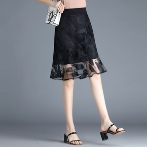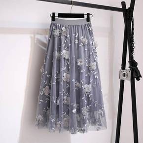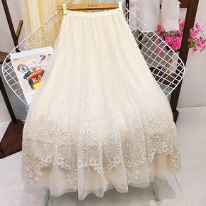 夏季大码女装200斤胖mm重工刺绣花网纱半身裙中长...