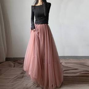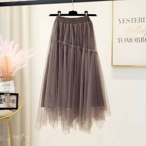 纱纱裙半身裙长款女秋冬网纱裙子不规则高腰舞蹈中长款...