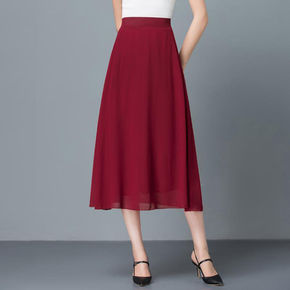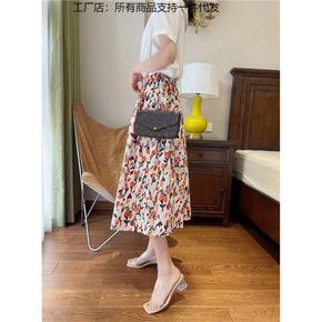 印花雪纺半身裙女春夏装2022遮肉显瘦大摆裙a型中...