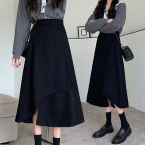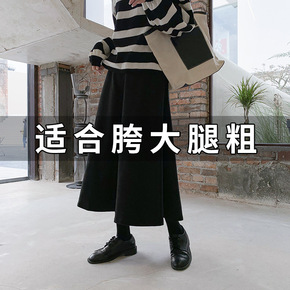 黑色毛呢半身裙女秋冬遮胯大码裙子高腰中长款大摆长裙...