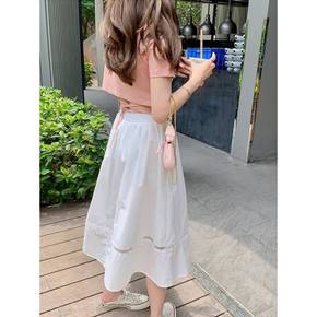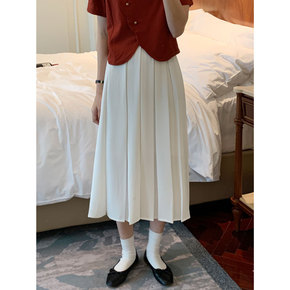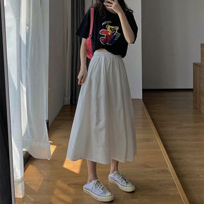 白色半身裙女设计感伞裙春夏中长款字裙夏季小个子长裙...