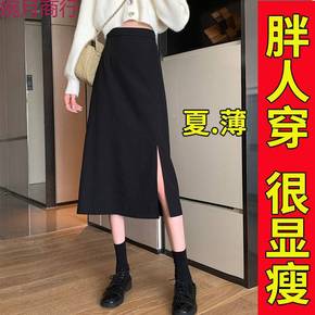 半身裙女夏黑色大码小个子伞裙薄款开叉字裙胖200斤...
