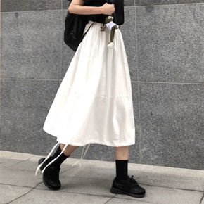 工装裙子女学生2022夏个性高腰抽绳a字伞裙宽松白...