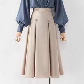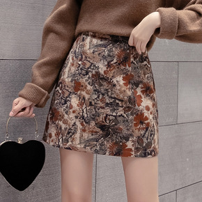 实拍秋冬新款法式复古高腰显瘦花色半身裙女流行网红A...