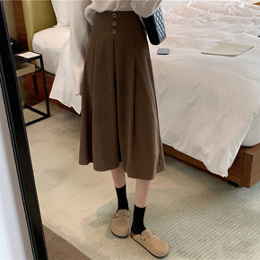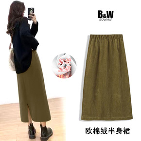 休闲半身裙冬灯芯绒裙子2021秋冬季新款高腰显瘦格...