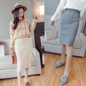 厚款针织半身裙秋冬女超长款脚踝高腰直筒包臀裙中长款...