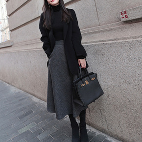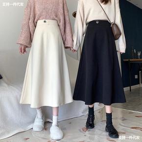 黑色加厚半身裙女2021春秋冬新款显瘦遮胯高腰中长...