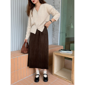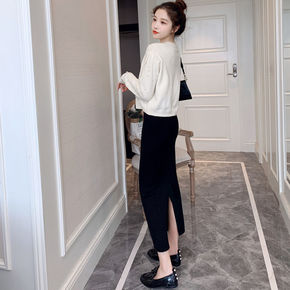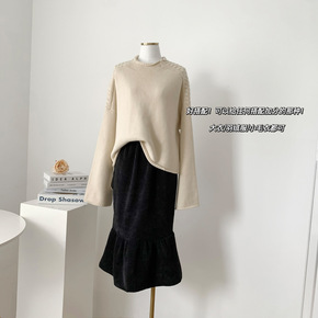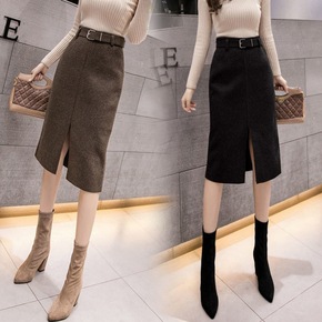 半身裙秋冬搭配毛衣复古设计感开叉半身裙女中长款秋季...