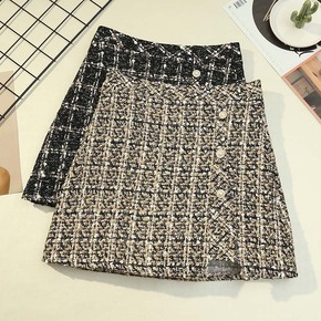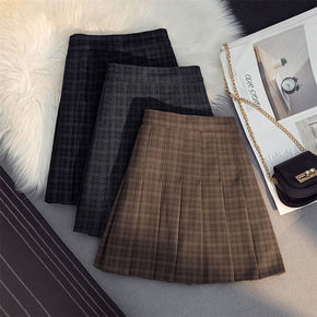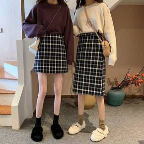 加厚毛呢格子百褶半身裙女2021秋冬新款显瘦高腰防...