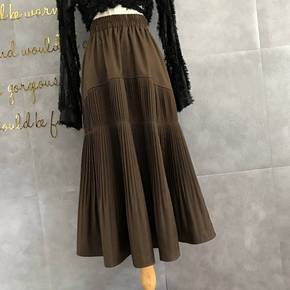 褶皱秋冬高腰中长裙百褶裙时尚半身裙工作女气质韩版弹...
