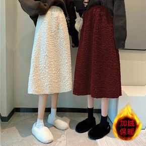 加厚羊羔毛绒半身裙女中长款秋冬百搭显瘦高腰a字裙子...