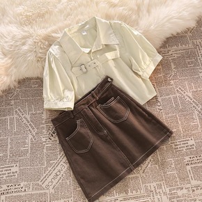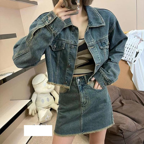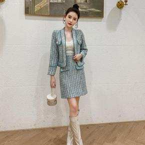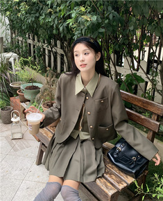 学院设计款小西装半身短裙套装大码女装...