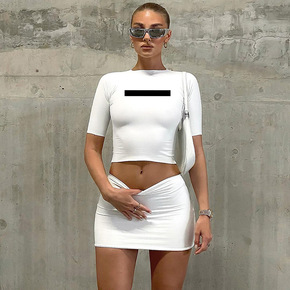 欧美露脐女装深V领性感小抹胸包臀紧身半身裙外贸辣妹...