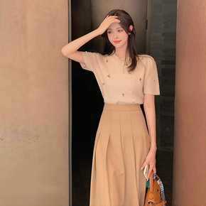 时尚2022夏季新款复古宫廷风套装女刺绣短款上衣半...