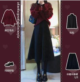 现H2022秋季新款韩版纯色高腰A字半身裙宽松休闲...