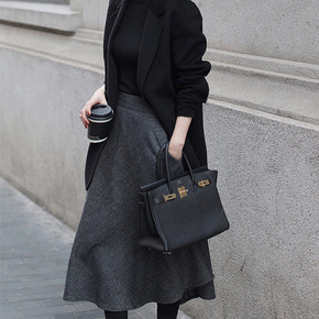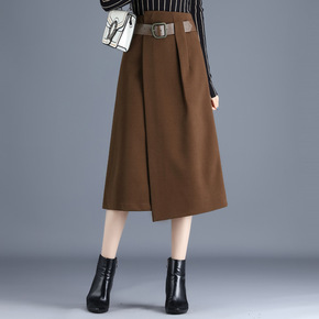 半身裙女2022春秋新款 纯色A字裙设计感小众羊毛...