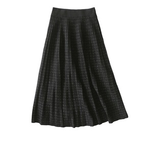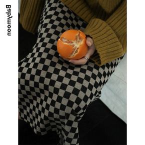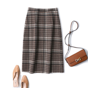 高性价比 夹亮色小格垂感十足中长款A字过膝羊毛针织...