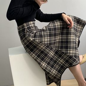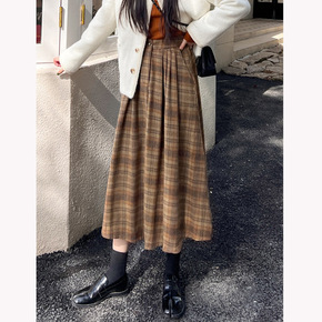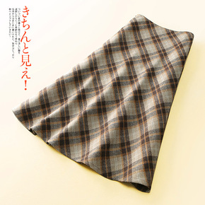 “怀旧费城”日系复古格子毛呢加厚伞裙A字半身裙女冬...