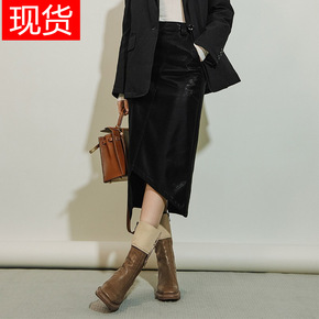 美洋MEIYANG 米格鲁皮裙 不规则开叉中长款加...