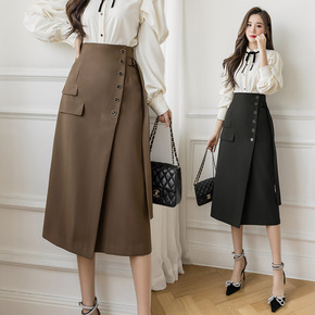 开叉半身裙女a字裙秋装2021年新款女包臀裙中长裙...