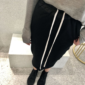 实拍实价~2021新款韩版亮闪闪松紧腰开叉中长款半...