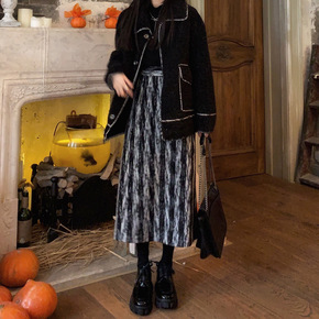 毛呢半身裙冬季2021新款复古刺绣设计感高腰A字裙...
