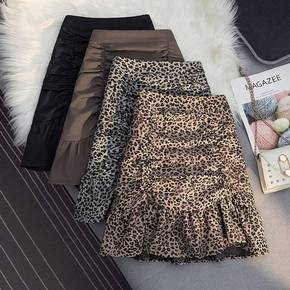 豹纹半身裙女2022秋冬新款时尚修身鱼尾荷叶边高腰...