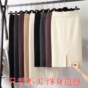 九分裙秋冬针织半身裙女2021新款秋冬季毛线中长款...