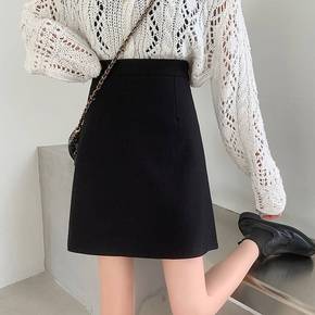 毛呢半身裙冬季百搭毛呢半身裙子中长款高腰a字裙显瘦...