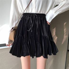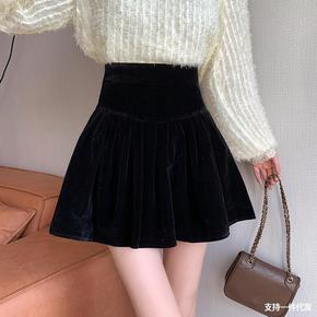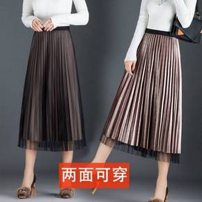 网纱裙女冬季金丝绒网纱半身裙女秋冬新款两面穿高腰百...