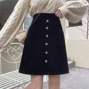 a字半身裙秋冬女灯芯绒半身裙女秋冬韩版显瘦百搭加厚...
