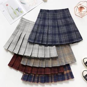 百褶裙女秋冬新款高腰字裙子学院风百搭显瘦短裙毛呢格...
